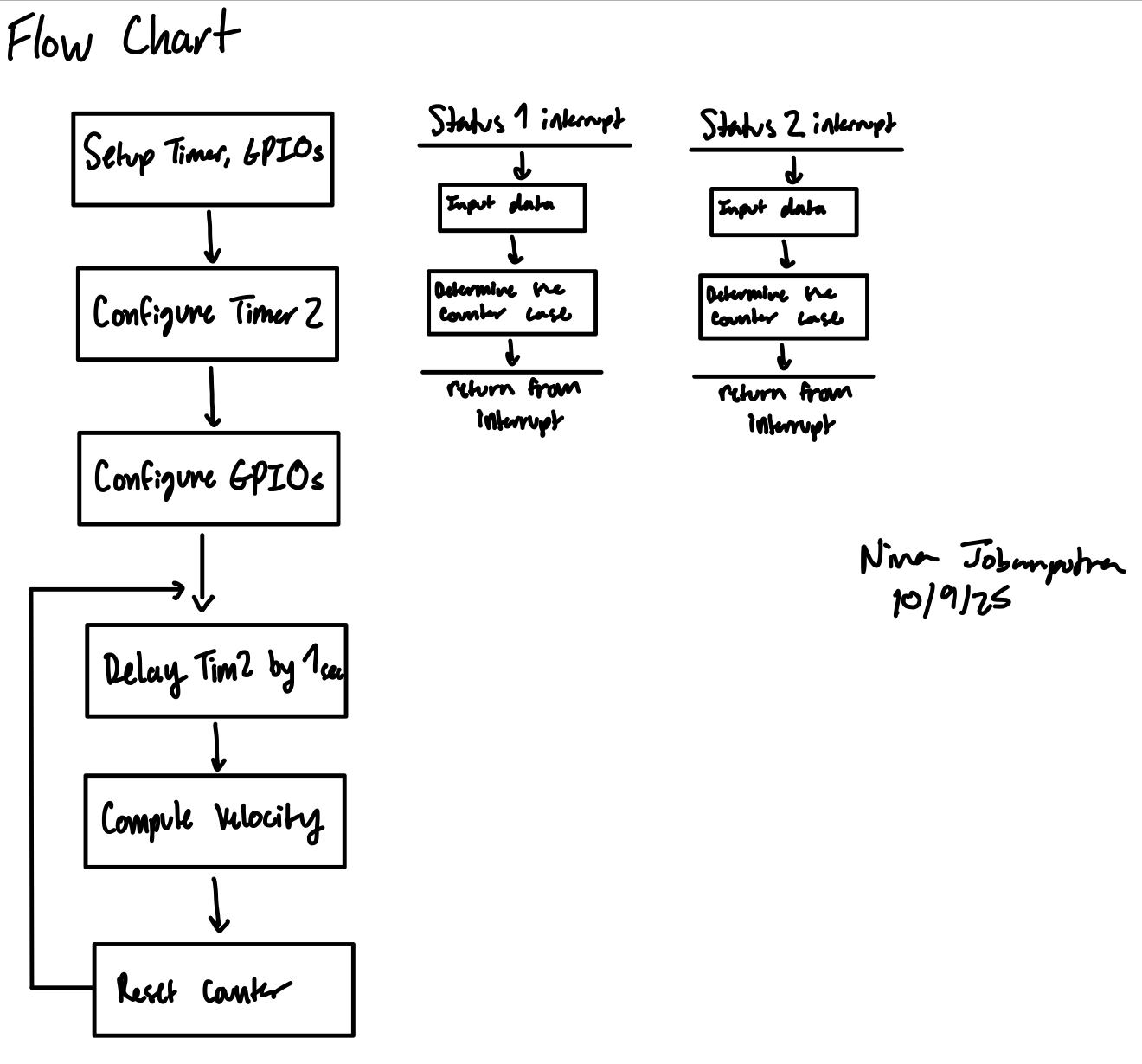 In this lab I used C code in order to determine the velocity of a motor. Specifically I used interrupts in order to record the velocity at a sampling frequency of 1Hz.